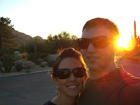 We have had such a fun time down here in Arizona. We've been able to stay in some amazing places. These are some of the pictures, the first one is a view in the hotel. The second is one of us waiting for the shuttle, the third one is the view from our room. We then went to another hotel and the sunset was so pretty, that same day we went to the pool (Zak loves his feet!). It's been perfect weather, and we are so glad to have spent the week with just each other!